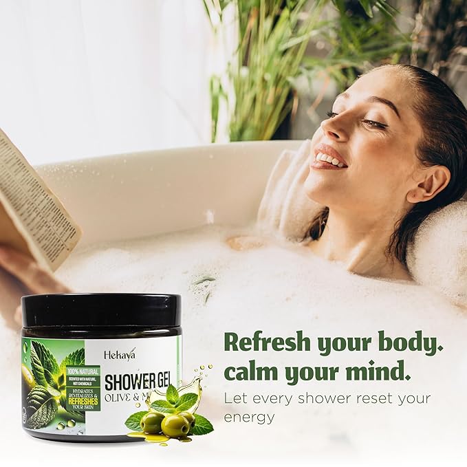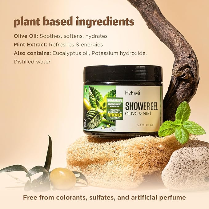 Hekaya Olive Oil & Mint Shower Gel – 14 oz | Natural Body Wash for Dry Skin | Hydrating & Moisturizing | Natural Body Wash for Women & Men | Daily Use.