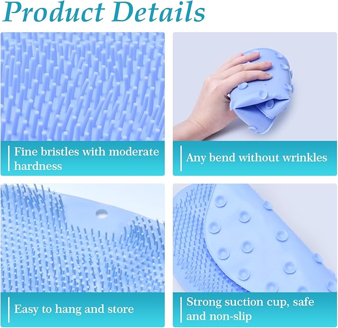 Silicone Foot Scrubber in Shower, Back Washer Exfoliating Bath Wash Pad Wall Mounted, Foot & Body Brushes for Men and Women(Blue)