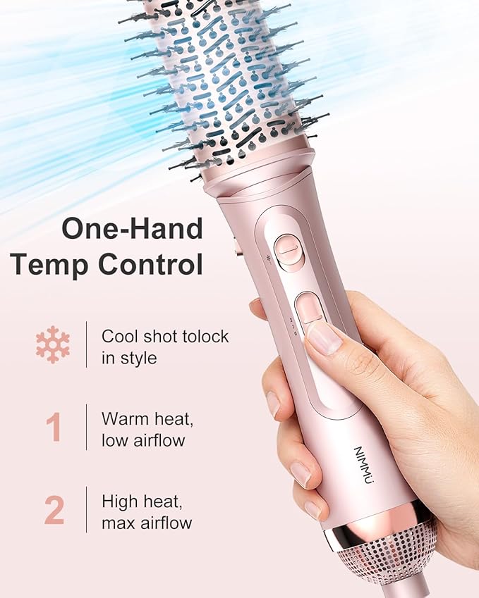 - 【One-Step Drying & Styling】Powered by a 1000W motor, this hair dryer brush quickly dries and styles your hair simultaneously, cutting your styling time by up to 50%. Say goodbye to the inconvenience of traditional hair dryers and hair brushes. With just one hand, you can easily create your ideal hairstyle in the rush of the morning.