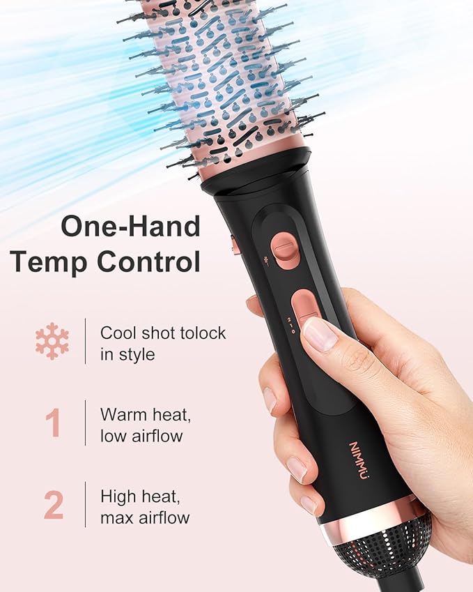 - 【One-Step Drying & Styling】Powered by a 1000W motor, this hair dryer brush quickly dries and styles your hair simultaneously, cutting your styling time by up to 50%. Say goodbye to the inconvenience of traditional hair dryers and hair brushes. With just one hand, you can easily create your ideal hairstyle in the rush of the morning.
