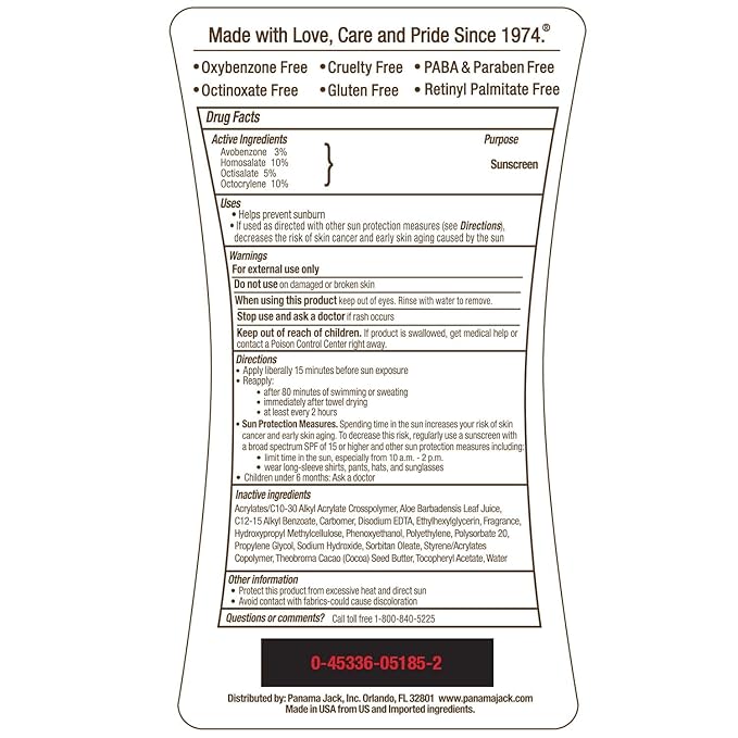 - Our Panama Jack sunscreen lotions delicately combines antioxidants with moisturizing oils and a tropical fragrance in an Oxybenzone and Octinoxate Free, Broad Spectrum UVA/UVB formula.