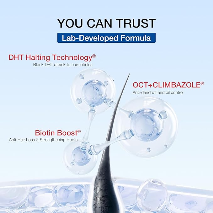 - DHT Halting Technology: Formulated to help combat the effects of DHT, which is associated with hair thinning. More than just a cleanser, it's a potent DHT blocker, formulated with caffeine, pumpkin seed oil, saw palmetto, and rosemary oil extract.