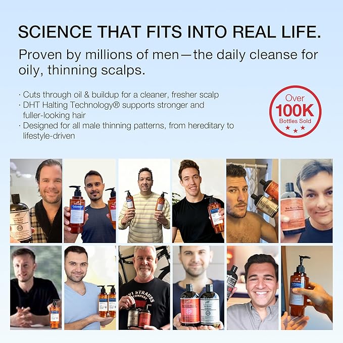 - DHT Halting Technology: Formulated to help combat the effects of DHT, which is associated with hair thinning. More than just a cleanser, it's a potent DHT blocker, formulated with caffeine, pumpkin seed oil, saw palmetto, and rosemary oil extract.