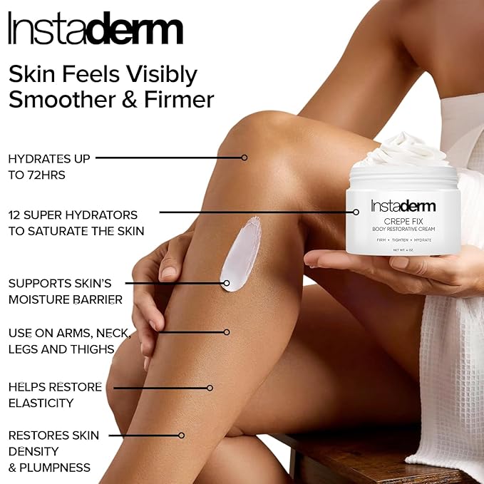 - ✅Specially formulated to target crepey, loose, thinning, sagging skin. A unique blend of powerful ingredients, including Hyaluronic Acid, Squalane, and Ceramides, works visibly to firm, tighten, and lift crepey skin on the body, arms, legs, chest, stomach.
