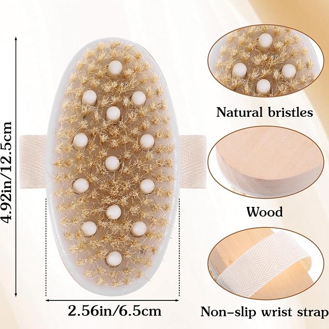 - 【10 Pcs dry brush for Body】Our set includes 10 dry brushes designed for body exfoliation and lymphatic drainage. Each brush features natural bristles and a sturdy canvas strap, measuring 4.92 × 2.56 inches, perfect for your family's diverse needs