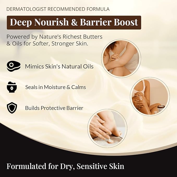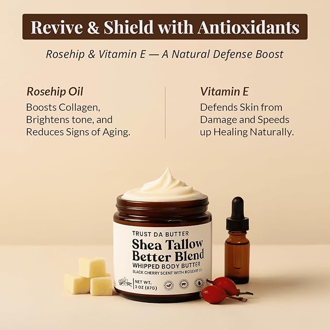 - Deep Moisturization & Skin Barrier Support: Made with 100% grass-fed beef tallow and rich shea butter, our whipped moisturizer delivers essential vitamins (A, D, E, K) for long-lasting hydration and soft, elastic skin—perfect for dry, sensitive or eczema-prone skin.