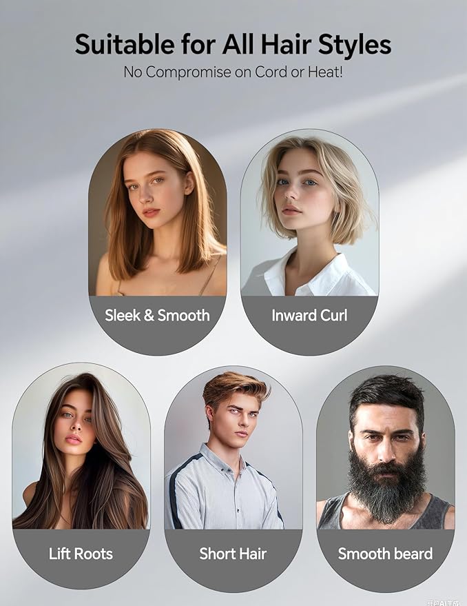 - 🧳Effortless Frizz Control with Natural Results: Create smooth, polished styles without the flatness of traditional flat irons. This brush adds volume and movement while taming flyaways for a naturally sleek look every day