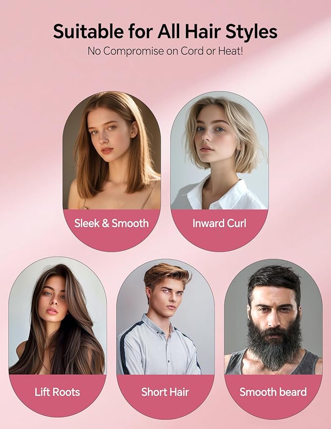 - 💖【3 Smart Heat Settings for Every Hair Type】 Fine, thin, or thick hair? No problem. This heated straightener brush offers 3 temperature options (160°C/320°F, 190°C/375°F, 220°C/430°F) so you can customize heat for your hair’s needs. Great for short bobs, long layers, or sensitive scalps.