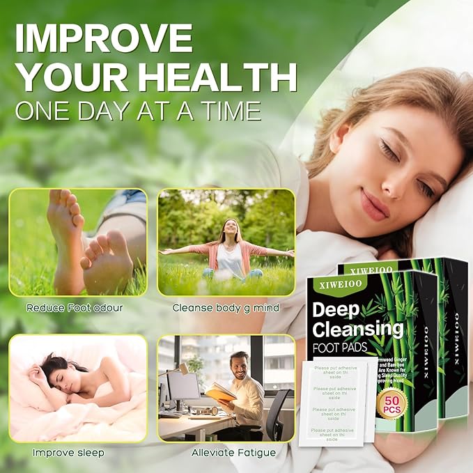 - XIWEIOO Foot Pads - 100 Pack Ginger Oil & Bamboo Charcoal Premium Foot Care Patches XIWEIOO 50 Pack Foot Pads Easy to Use: Simply attach these foot pads to your feet before bedtime, and they will help you sleep more easily. After using the bamboo foot pad for 6-8 hours, your body's waste products begin to be eliminated.