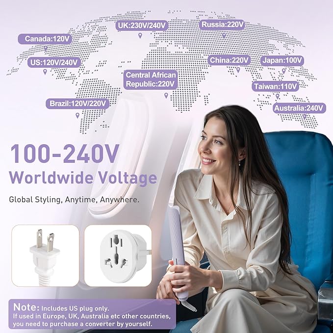 - Note for International Use: This hair straightener supports dual voltage (110–240V) for worldwide use, but it comes with a US plug. If you're using it in Europe or other regions, please use a suitable plug adapter.
