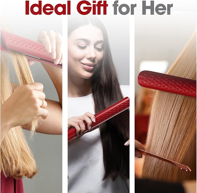 Quico Hair Straightener, 110-240V Global Travel Hair Straighteners for Women, 15s Fast Heating, Professional Negative Ion Flat Iron, Temp Memory, 320℉-450℉, Auto-Off, with Glove and Clips, Gift, Red