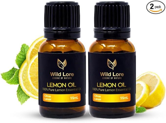 Lemon Essential Oil, 15ml, 100% Pure and Natural, Cold Pressed from Lemon Peel, Aromatherapy Oil for Diffuser, Skin, Hair, Natural Cleaning, Home Freshening, Pack of 2