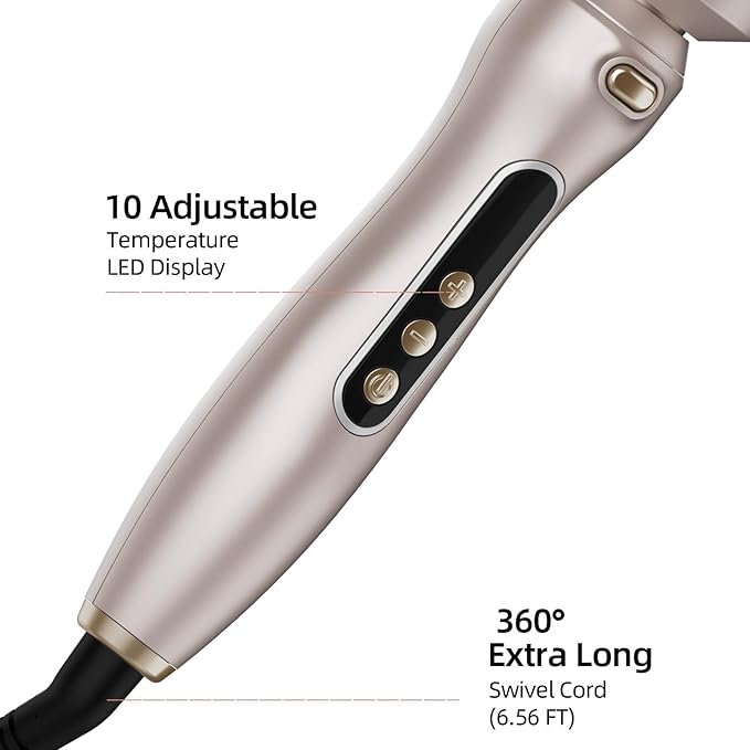 - 11 TEMP SETTINGS & REAL TEMP DISPLAY: This thermal curling brush is customizable from 200°F to 400°F in 20°F steps—Safely customize heat for fine or thick hair, no scorching. Precise temp display instead of the traditional blurry ""low and high"" setting. It also has temp memory, no need to reset next time. Thisthermal blowout brush will automatically turn off after 60 minutes. Whether you want a soft finish or bold styling, achieve salon-quality results safely at home.