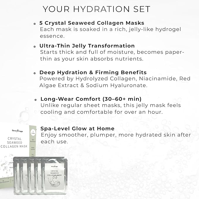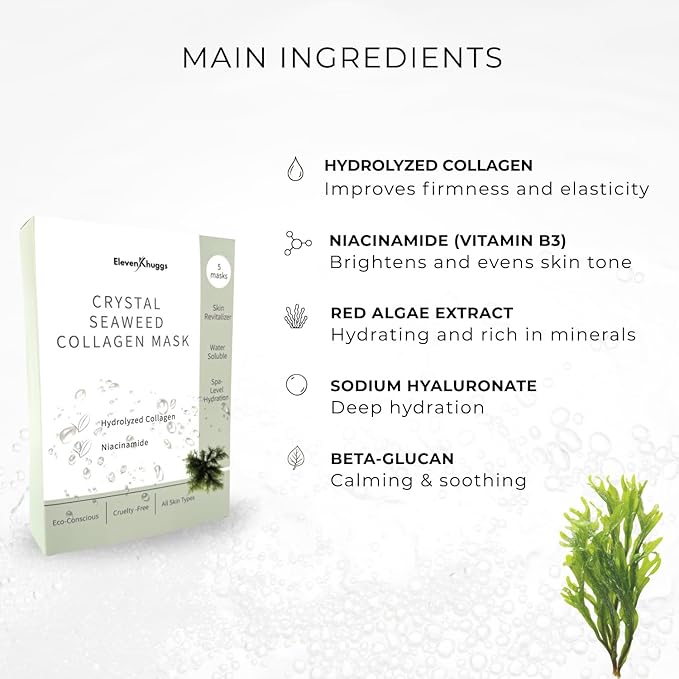 Crystal Seaweed Bio-Collagen Sheet Mask – Hydrating, Brightening & Firming Face Masks with Niacinamide, Korean Skincare Formula (5 Pack)