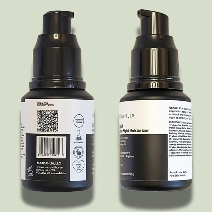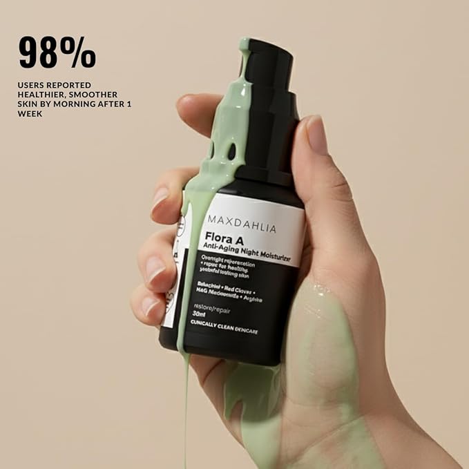 MAXDAHLIA Flora A Anti-Aging Night Moisturizer – Retinol Alternative Bakuchiol & Botanical Night Cream – Hydrating, Firming & Wrinkle-Reducing Moisturizer for Youthful Radiance