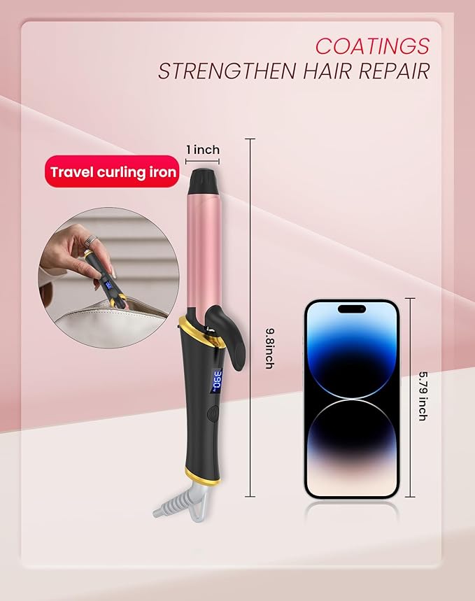 - ⚡ LIGHTNING-FAST 30S HEAT-UP & 5-PRECISE TEMPS: Value your time? So do we. This curling iron reaches your desired temperature in just 30 seconds, perfect for on-the-go styling. With 5 precise temperature settings (250°F-390°F) and a clear digital display, you have full control to customize heat for fine, normal, or thick hair, ensuring beautiful curls without the damage of excessive heat.
