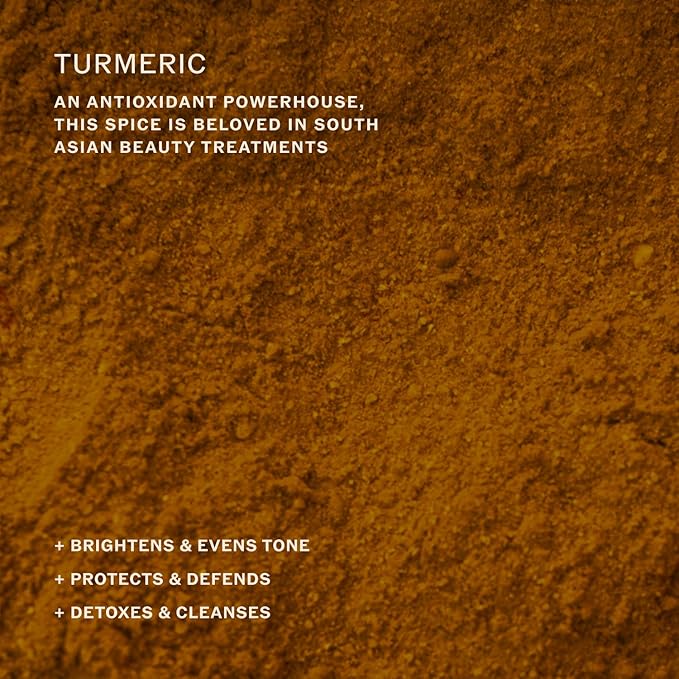 - REFINES & CLARIFIES: Powerful Ayurvedic Turmeric helps purify, improve skin texture, and even skin tone.