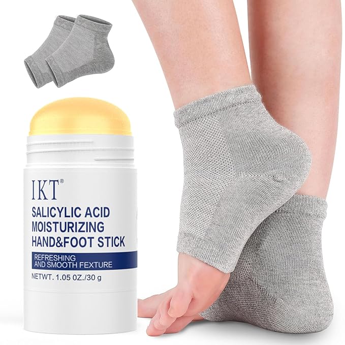 A pair of moisturizing heel socks, combined with a professional heel repair balm stick, deeply treats dry and cracked feet, providing intensive hydration and softening