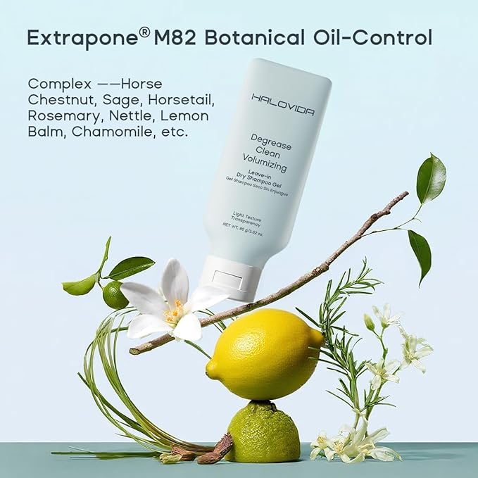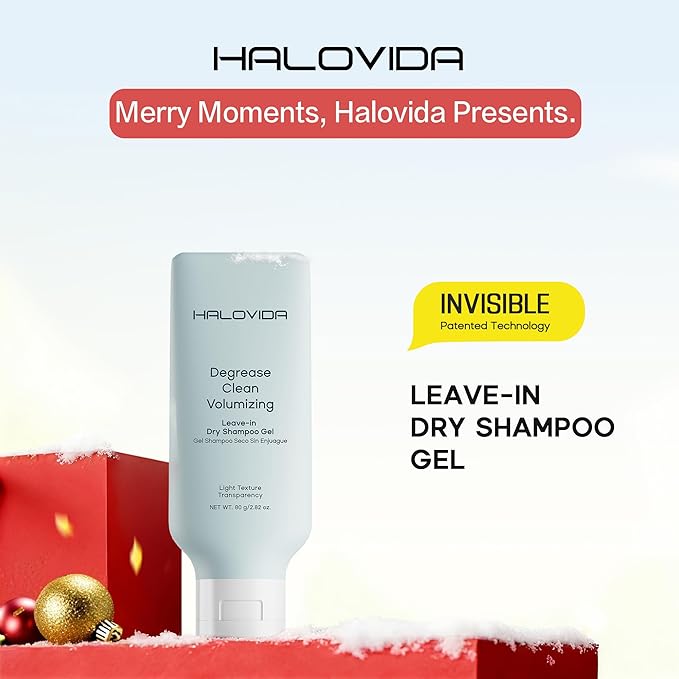 HALOVIDA Leave-in Dry Shampoo Gel, Instant Oil Absorption & Volume, Light Texture Transparency, Non-Aerosol, Safe & Clean with Natural Ingredients, 2.82 oz