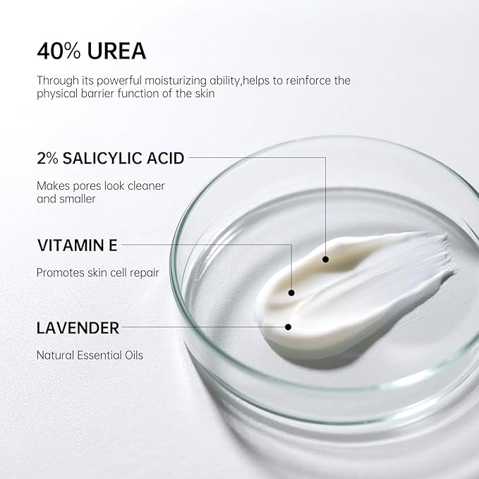 Urea Cream 40 Percent Foot Cream Maximum Strength with Hyaluronic for Dry Skin Cracked Heels Callus Remover