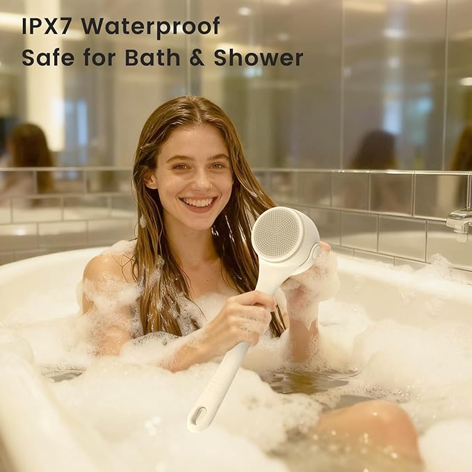 - IPX7 Waterproof Design for Bathroom Safety:Built with IPX7 waterproof technology, the brush is fully safe to use in the shower or bath. No need to worry about water damage—you can easily clean every part of your body while enjoying a relaxing bath, and the detachable brush head is simple to rinse and dry after use.