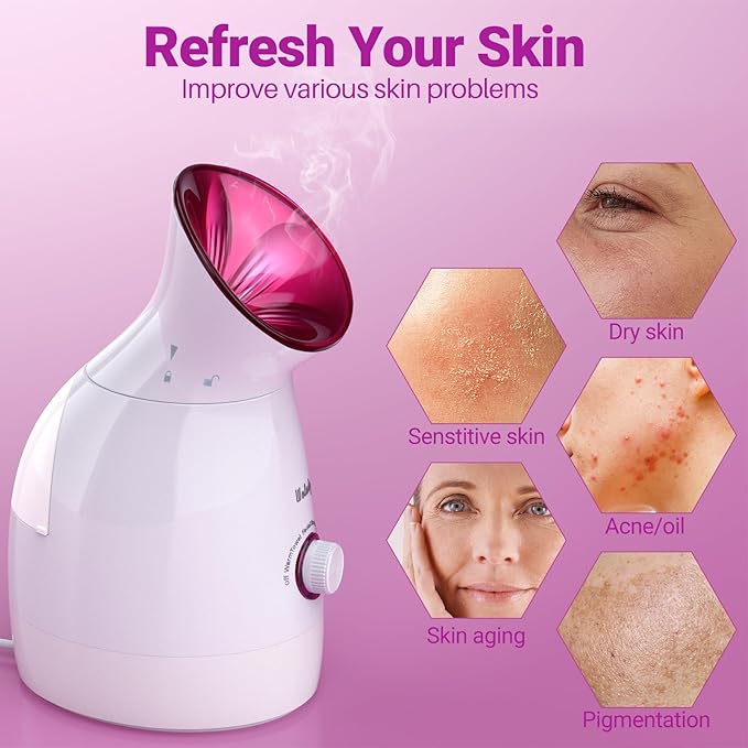 - 💦【Gentle Facial Steamer】: Our facial steamer does this by combining a conventional heating element with a new ultra sonic vaporizer to produce nano with negatively charged ionic particles, combined with ionic water particles are up to 10x more effective in penetrating skin.The face steamer activates the hydrophilic factor and replenishes water in your skin, make your skin look healthier and younger, softens the cuticle, restores smooth.