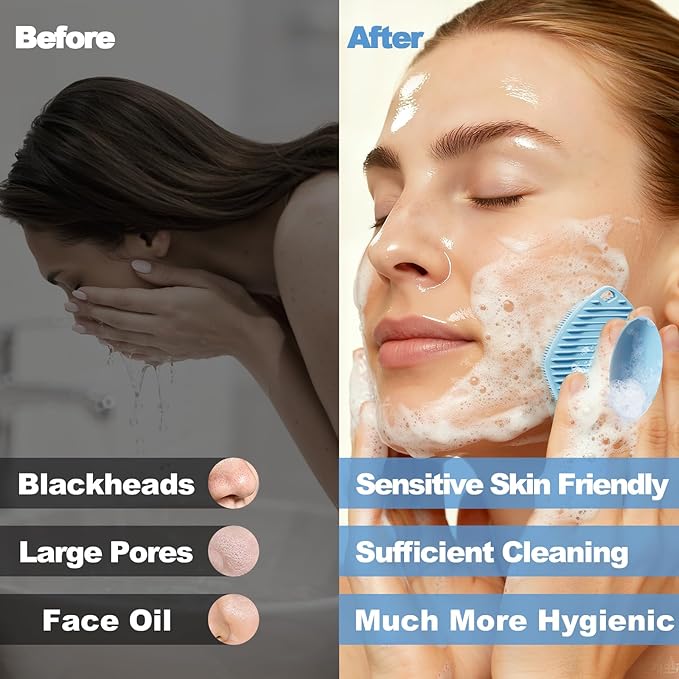 - Hygienic Silicone: The ARIOSOX face scrubber is made from high-quality, food-grade silicone. Each scrubber fits comfortably in your hand, and the soft silicone bristles provide gentle yet effective exfoliation. This helps to reveal a nice glow without irritating the skin