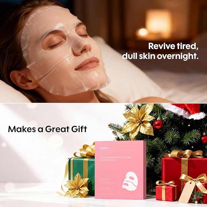 ZealSea Bio Collagen Wrapping Hydrogel Face Mask, Overnight Jelly Gel Sheet Mask for Glass Skin, Deep Hydration, Pore Care, Elasticity Improvement, Firming, Advanced Facial Skincare Solution, 4 Pack