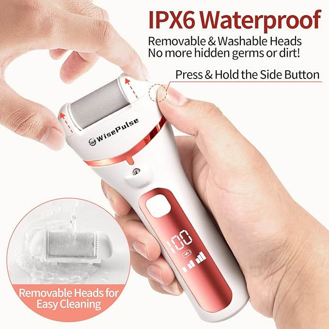 - IPX6 Waterproof & Easy to Clean: This rechargeable electric feet callus remover is IPX6 waterproof, which can be rinsed under running water. It is suitable for both dry and wet use, but we suggest do not submerge in water too often in case of any problem. The included small brush makes it easy for you to clean.