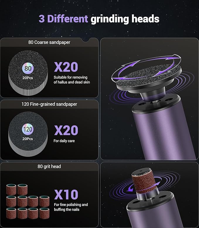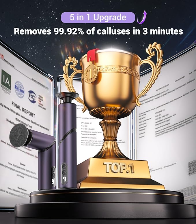 - ✨【5-in-1 Pro Upgrade - Removes 99.92% Callus in 3 Min】 This 5-in-1 multi-function electric foot callus remover features a 3.0 brushless motor (4500 RPM/35dB) to effectively eliminate peeling and dead skin problems. Engineered for professional-grade dead skin removal for feet, it delivers salon-smooth results with 100% satisfaction.