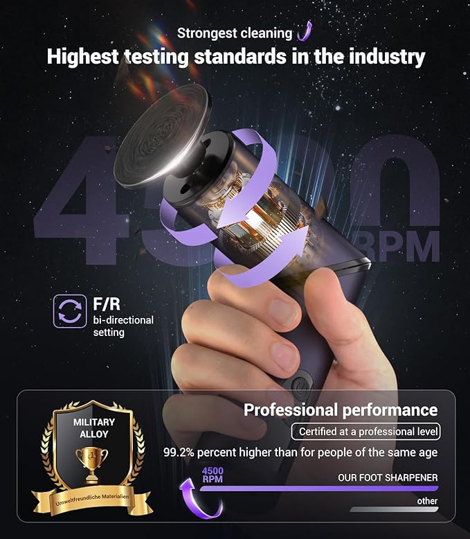- ✨【Smart Pressure Sensor - Auto-Stop in 10s】 Certified safety: Reduces accidental injury rate to 0.7% (vs. 8.3% industry average). The heel scraper for cracked heels automatically shuts off within 10 seconds upon detecting abnormal pressure. Proven 87% more reliable than conventional calloused feet remover tools with <1.2% false trigger rate.