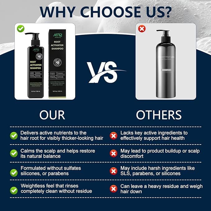 - 1.Root Activator Shampoo for Men & Women - Promotes Hair Growth & Reduces Thinning Experience our root activator shampoo, specially formulated as a hair growth shampoo for both men and women. This anti-hair loss solution works to activate follicles and stimulate new growth, effectively reducing hair shedding and combating thinning hair. See visibly thicker, fuller hair with regular use.