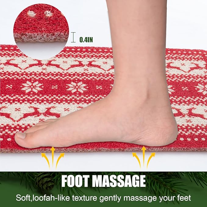 - š Festive Holiday Patterns ā Choose from three Christmas designs: Gingerbread Santa, Holiday Plaid, and Reindeer Snowflake. Each mat brings a warm holiday spirit to your bathroom, shower, or tub.