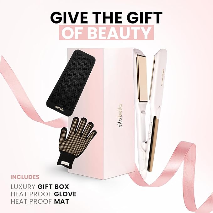 ELLA BELLA® Titanium Flat Iron Hair Straightener (with Infrared) • Professional Straightening Iron • Digital Display to Accurately Control Temperature • As Featured in Good Housekeeping - Gloss White