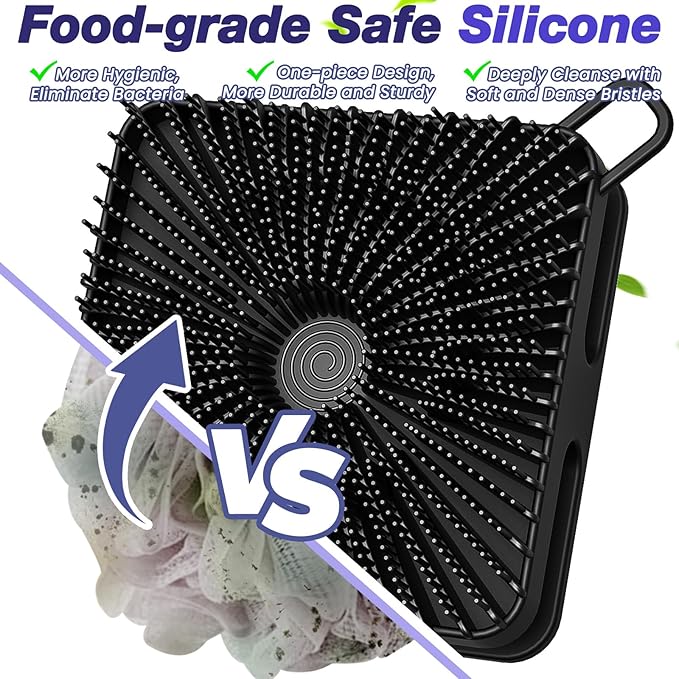 - 【Lots of Anti-slip Dots】The handheld part contains non-slip points on both sides, which create more friction with your hand when you use silicone body brush and firmly fit on your hand without easily falling off.
