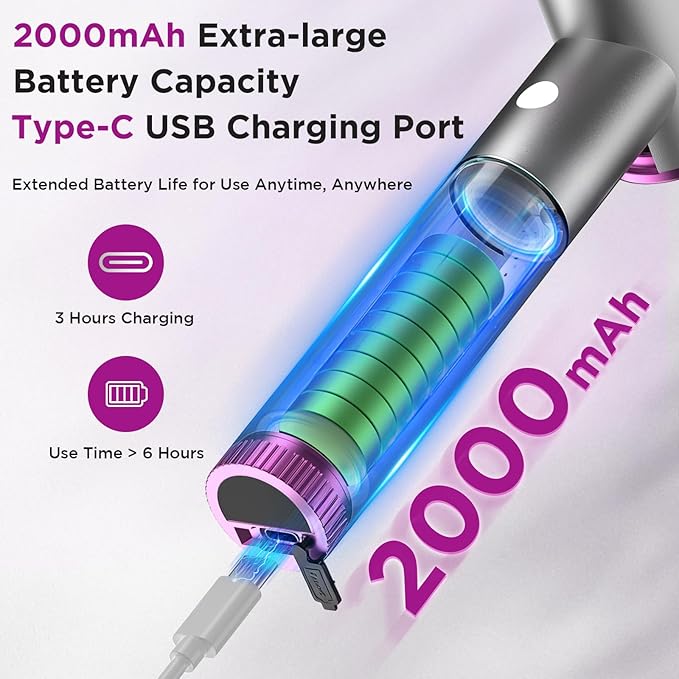 - 【2000mAh Rechargeable Battery】Built-in high-capacity 2000mAh battery offers cordless convenience. The LCD screen clearly shows remaining power, so you can use it anytime, anywhere—without being tied to charging cables.
