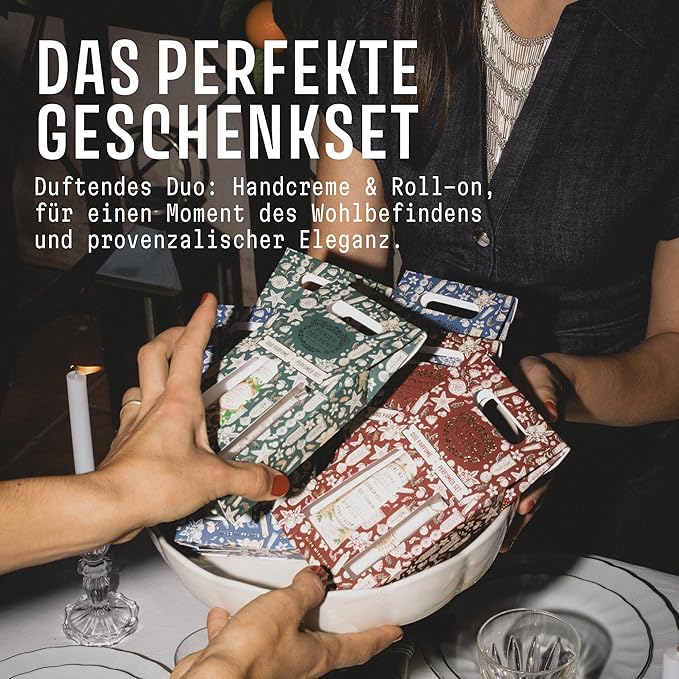 - π GIFT DUO WITH HIGH-QUALITY NATURAL INGREDIENTS β This beautifully crafted gift set features a 1.7 oz Hydrating Hand Cream made with up to 96% natural ingredients, designed to deeply nourish and protect your skin while leaving it soft and smooth. Paired with a 0.3 oz Roll-On Eau de Toilette, this duo combines effective skincare with a luxurious fragrance experience, making it an ideal addition to your daily beauty routine or a thoughtful present.