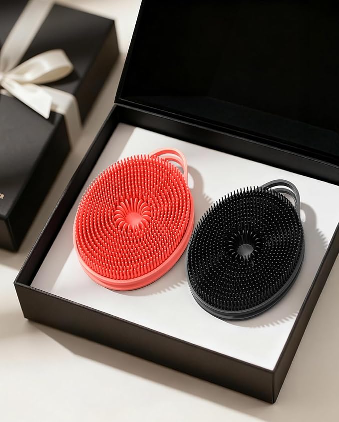 - 2-IN-1 SILICONE BODY SCRUBBER - This innovative silicone body scrubber features a dual-sided design—one side with soft bristles for gentle cleansing and foaming, the other with firm massage nodes for eliminating fat & exfoliation. It functions as a body scrubber exfoliator, effectively removing dirt, oil, and dead skin cells while promoting smoother, healthier skin