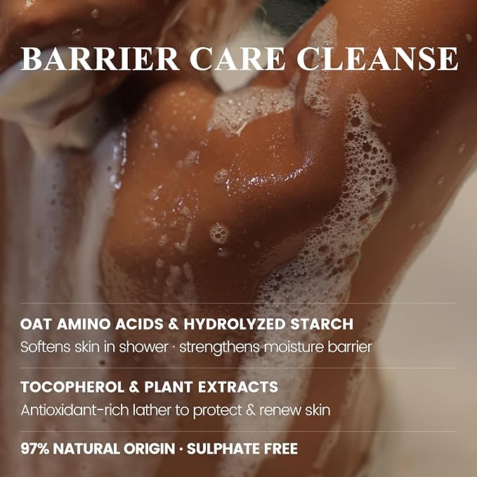 - Deep Hydration & Barrier Support — A nourishing blend of argan oil, oat essence, and hydrolyzed starch locks in moisture, reinforcing the skin barrier for long-lasting softness