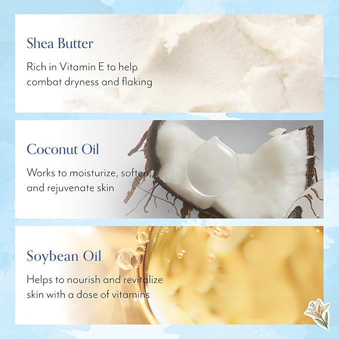 - NOURISHING INGREDIENTS: Formulated with Shea Butter, Coconut Oil, and Soybean Oil to deeply hydrate, soothe dryness, and restore skin’s health while locking in long-lasting moisture.