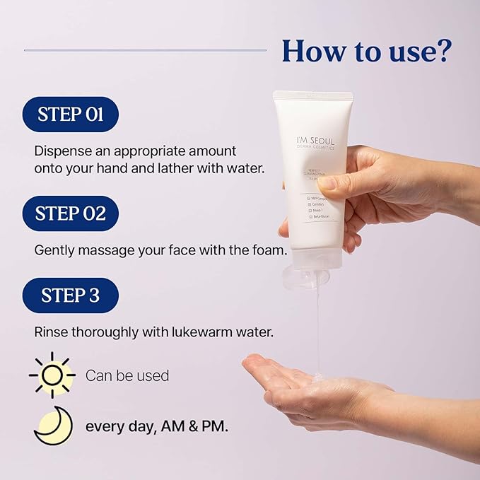 I'M SEOUL Cleansing Foam Gentle Micellar Facial Cleanser with Plant-Based Surfactants NB P-Complex Centella Beta-Glucan Hydrating Korean Face Wash 4.41 oz