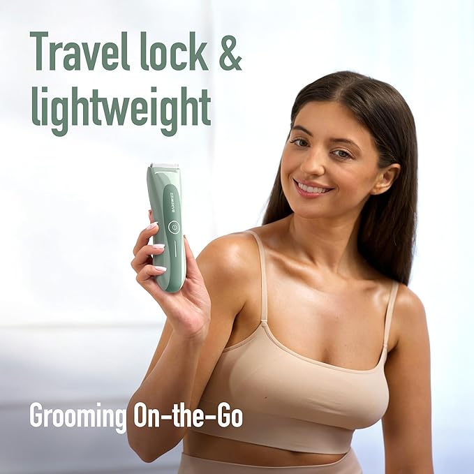 - Forget the fear of razor burn, nicks, and irritation. The BAREWIZE new bikini trimmer for women utilizes an advanced technology of ceramic blade, which stays cooler and sharper for longer than traditional stainless steel. This design ensures a truly painless and hypoallergenic shave across your sensitive zones, including the bikini line. This hair trimmer glides over your skin, leaving behind a clean result without the frustrating bumps, redness or ingrown hairs. We guarantee a comfortable experience that elevates your self-care routine from a chore to a treat.