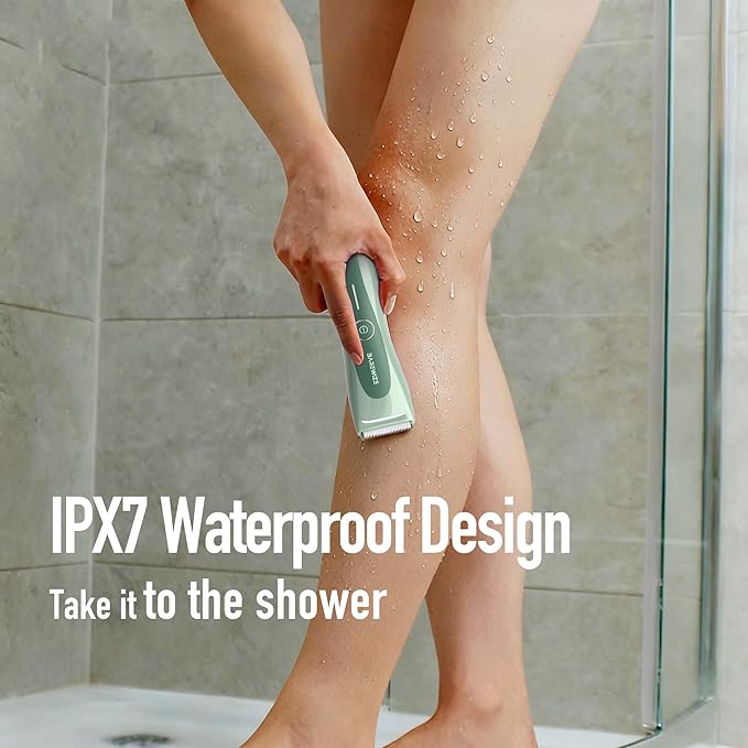 BAREWlZE Bikini Trimmer for Women, Pubic Hair Trimmer | LED Light, IPX7 Waterproof, USB-C Rechargeable, Replaceable Ceramic Blade | Electric Razors for Women, Electric Body Hair Shaver (Mint Oasis)