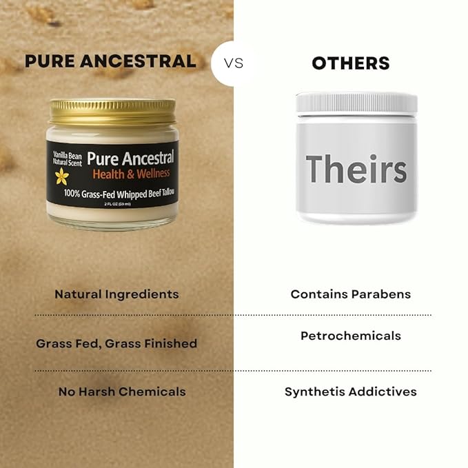 Pure Ancestral Health & Wellness 100% Grass Fed Beef Tallow for Skin Care - Face + Body - Whipped Moisturizer for Sensitive Skin - Natural Lotion | Travel Size 2 Oz. (Vanilla Scented)