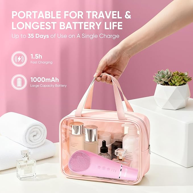 - Portable Design with Ultra-Long Battery Life: Equipped with a 1000mAh battery, this facial cleansing brush supports USB charging and auto-shuts off after 12 minutes of continuous use. Fully charge in just 1.5 hours for up to 40 days of use—ideal for busy schedules, students, or travelers, eliminating the need for frequent charging