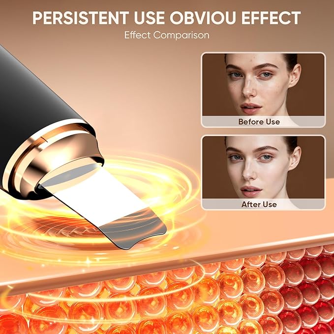 - 4 Ultrasonic Spatula Modes for Comprehensive Skincare: Click the “Spatula” button to utilize ultrasonic vibration and ion technology: remove dirt, oil, and blackheads effectively; switch to negative ion mode to deeply infuse serums, enhancing absorption for nourished, subtly lifted skin. Customize your routine with modes tailored to your needs.