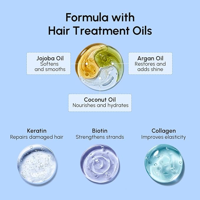 - Hydrating Mask for Straight, Wavy & Curly Hair — A professional hydrating hair mask with jojoba and argan oil helps soften roughness and dryness. Works as a gentle split ends hair treatment and protein hair treatment, supporting nourished-looking hair