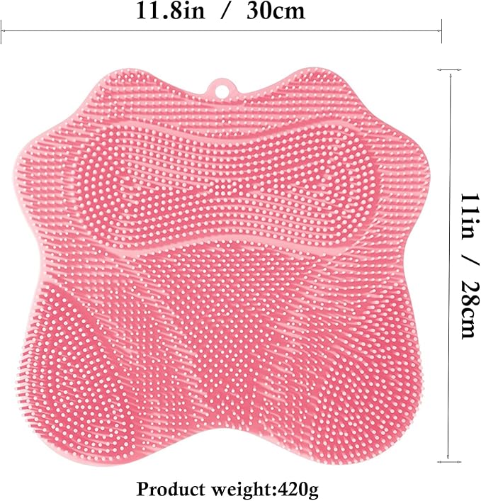 - 【Strong Suction Cup Design】 The silicone foot scrubber for shower is made of high quality silicone material, soft and comfortable, measuring 11.8 in x 11in. Equipped with enlarged strong suction cups on the bottom for stability. Equipped with hanging holes, easy to hang for drying and more space saving.