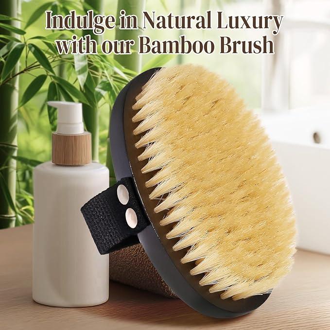- 100% Natural Bristles: Made from quality pure natural bristles that are firmly attached, ensuring they won't shed during use. Azymi dry brush delivers a more effective exfoliation and skin-nourishing benefits, promoting a sustainable lifestyle.