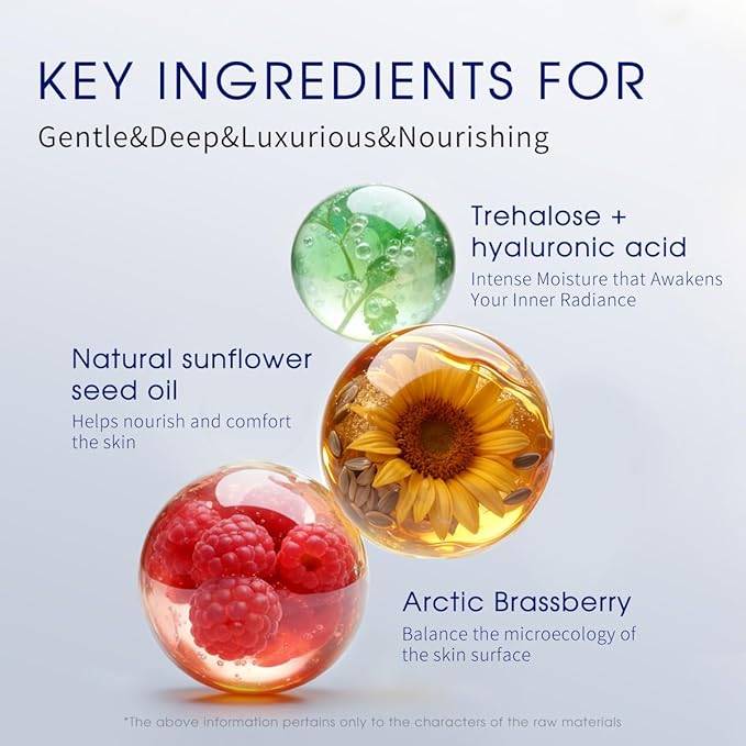 - {Daily Facial Cleanser} Formulated with Plantacare 1200 UP (Lauryl Glucoside) for mild yet thorough cleansing, Trehalose and Hyaluronic Acid to help maintain hydration, and Raspberry Leaf Extract to support the skin barrier and microbiome balance.
